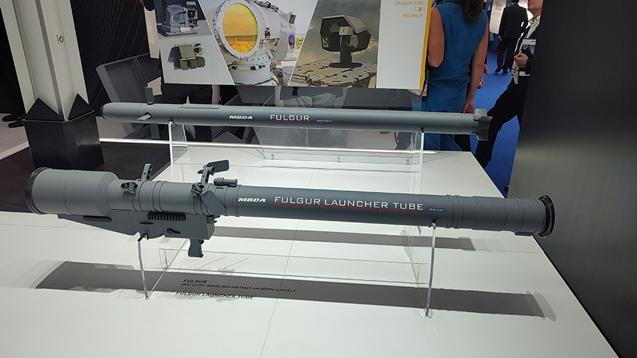 A SEA FUTURE è stato presentato il modello in scala 1:1 del lanciatore spalleggiabile del sistema V-SHORAD FULGUR. Il sistema ha una configurazione classica con un tubo di lancio e un'"impugnatura" dotata di grilletto. Particolarità di questo MANPADS (Man Portable Air Defence System) è la presenza di un mirino elettro-ottico (non presente nel mock-up) che ha 10 km di portata e offre al tiratore la possibilità di "vedere" il bersaglio ben più lontano rispetto a quanto possibile semplicemente a vista. Ovviamente il modello del lanciatore è stato portato insieme al modello del missile, quest'ultimo, però "più affinato" rispetto a quanto mostrato in precedenza.