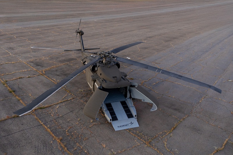 A proposito di UH-60L, ieri, nel corso del salone AUSA, Sikorsky ha presentato una novità: l’S-70 UAS U-HAWK, elicottero unmanned multimissione ricavato da un UH-60L BLACK HAWK. Il prototipo, sviluppato in soli 10 mesi, ha visto la sostituzione del cockpit con 2 porte “a conchiglia” e una rampa azionate elettricamente, oltre all’adozione di un sistema di controllo del volo fly-by-wire di terza generazione integrato con il core di intelligenza artificiale per l’autonomia MATRIX e sistemi di comunicazione LOS e BLOS. La piattaforma offre un 25% di spazio in più per il carico rispetto al BLACK HAWK tradizionale, consentendo il trasporto di un pod HIMARS da 6 razzi, 2 Naval Strike Missile o un UGV come l’HDT HUNTER WOLF 6x6. Può inoltre impiegare sciami di droni per missioni di ricognizione o attacco, con un solo operatore in grado di controllare più velivoli. Il primo volo è previsto per il 2026.