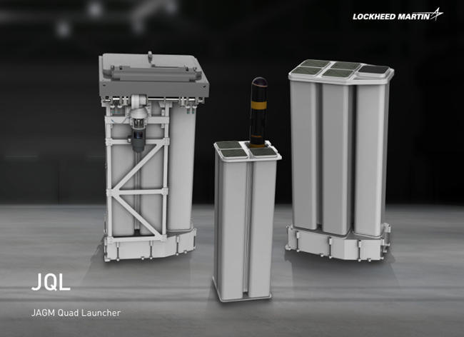 Lockheed Martin ha annunciato di aver effettuato il primo test di lancio del missile Joint Air-to-Ground Missile (JAGM) da un nuovo lanciatore quadruplo (JQL, JAGM Quad Launcher, pronunciato “jackal”), progettato per sparare il missile in configurazione verticale.