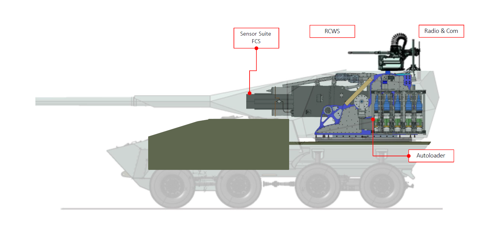 La torre, inoltre, è dotata di elettronica realizzata con architettura NGVA (elettronica realizzata in comunalità con il programma A2CS/AICS), e, per l’autodifesa (anche antidrone), può essere equipaggiata di torre remotizzata HITROLE armata di mitragliatrice da 12,7 mm (o da 30 mm con mitragliera BLAZE 30 sempre di Leonardo).