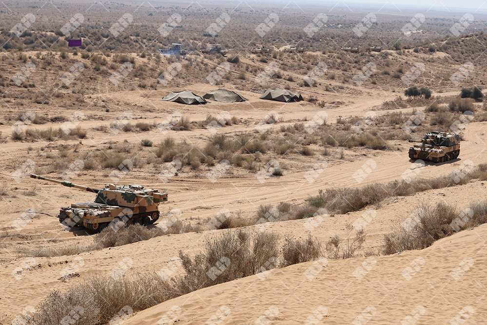 L’attività ha visto l’impiego coordinato di molteplici mezzi e sistemi, con un focus specifico sul fuoco di precisione a lungo raggio e sulla capacità di integrazione tra le diverse componenti: queste, insieme, hanno formato una Forza Integrata di Manovra. Quest’ultima ha compreso, in particolare, MBT T-90S, IFV BMP-2K e obici semoventi K-9 VAJRA da 155x52 mm (versione indiana dei K-9 THUNDER), ma anche pezzi da traino come i SHARANG (ex M-46, arma sovietica da 130 mm, ricalibrata dall’israeliana Soltam per l’Esercito Indiano come obice M-46S da 155/45 mm), e sistemi d’artiglieria contraerei BOFORS da 40/70 mm.
